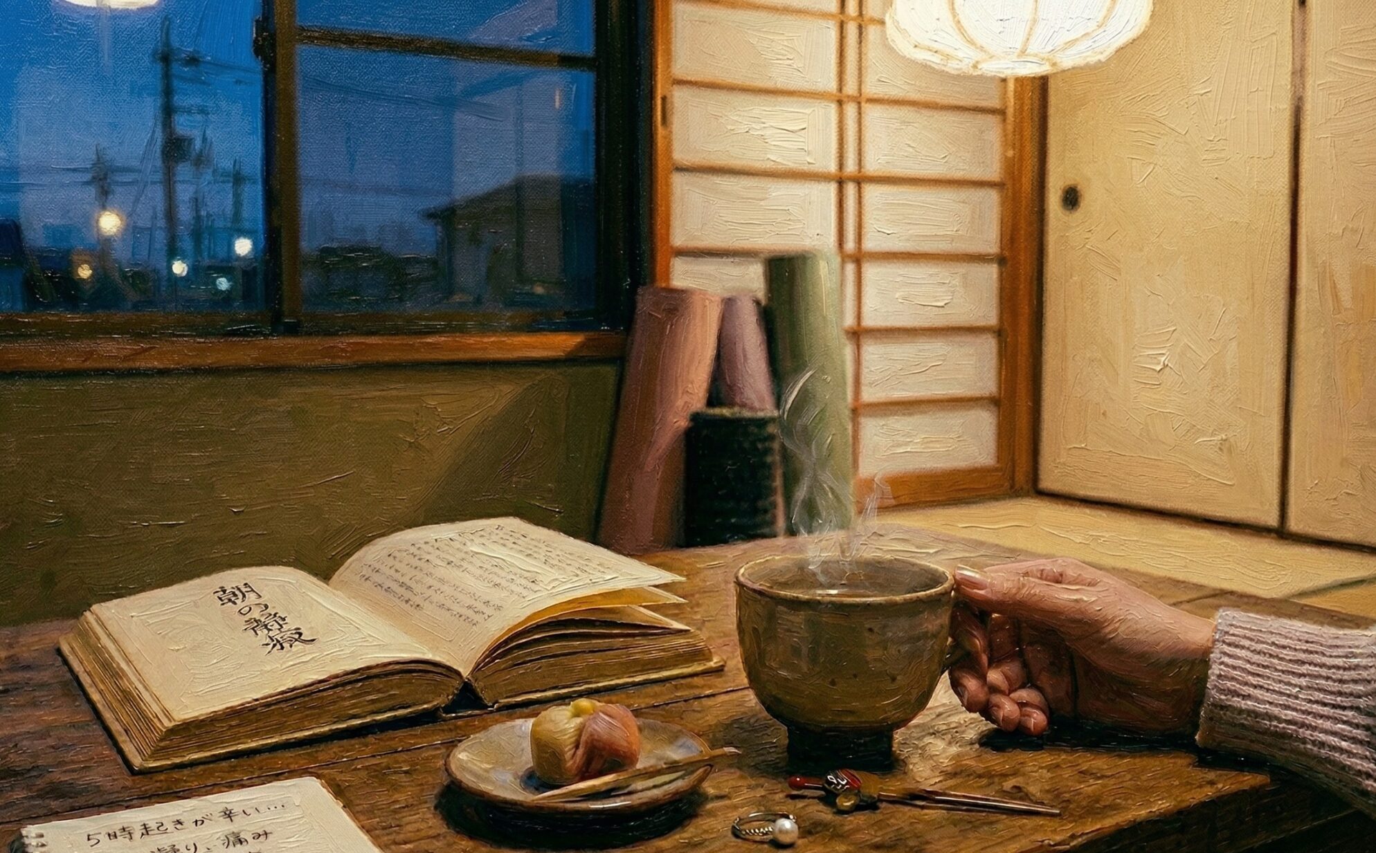 5時に起きる習慣は子育て中から続いており、子育てが終わった今は自分時間としてその時の気分でお茶を選び、お菓子を一つ食べながら本を読んだり、考え事をしたり、大事な時間。