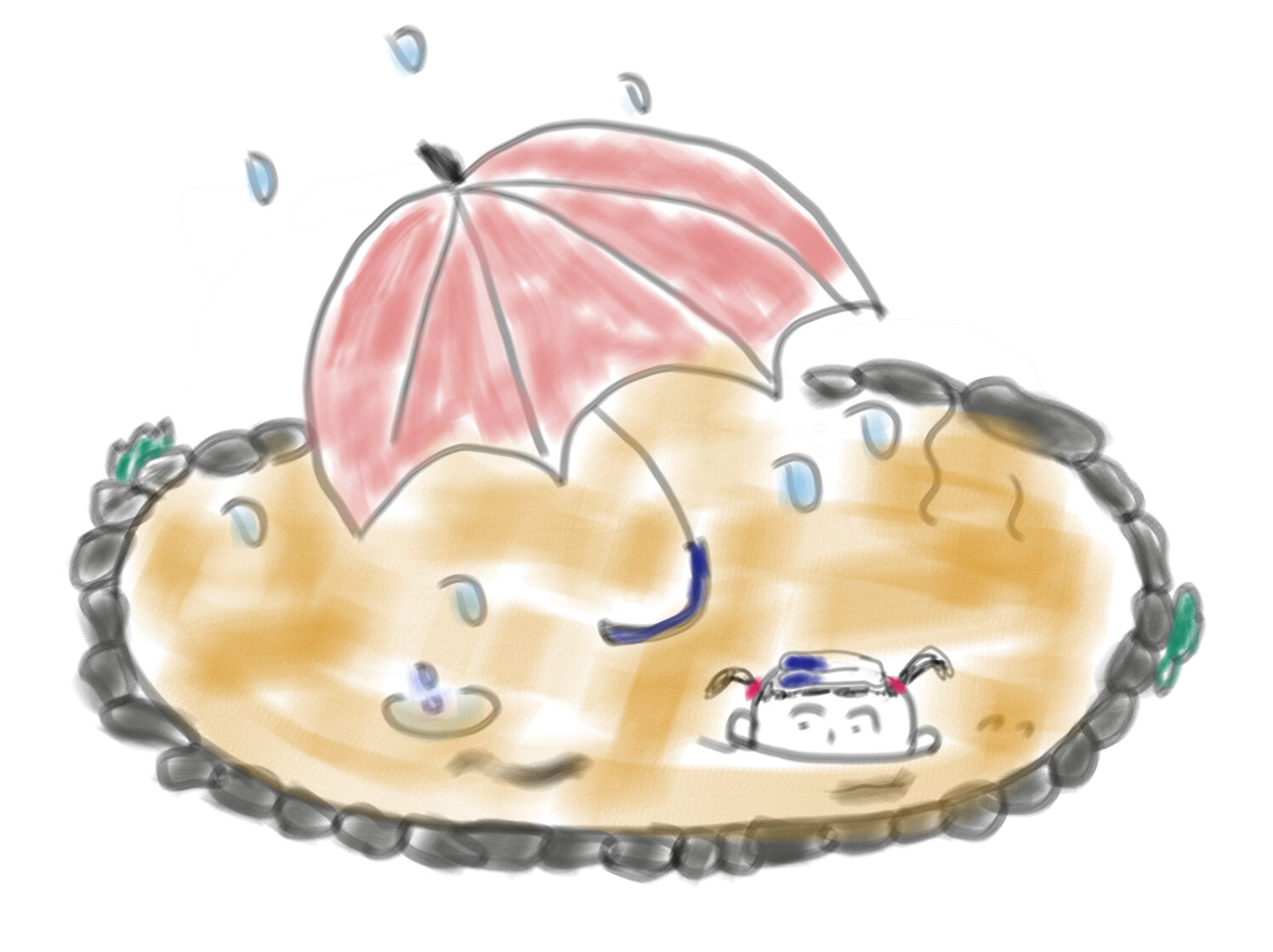 雨粒があたらないように少し位置をずらしてお湯に浸かっていると、温泉がお風呂に注がれる?!流れてくる音が「チョロチョロ」、雨粒がお湯におちる「ちゃぽんちゃぽん」、雨の降る音が「さらさら」、耳を澄ますと聞こえてくる。穏やかってこういうことかなと思った。